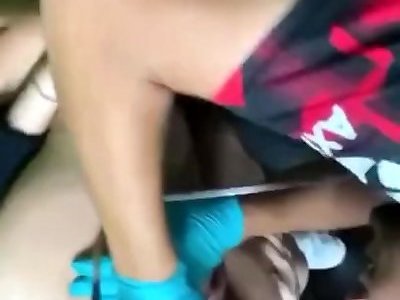fente noire léchée, pénétrée et coincée avec une bite raide