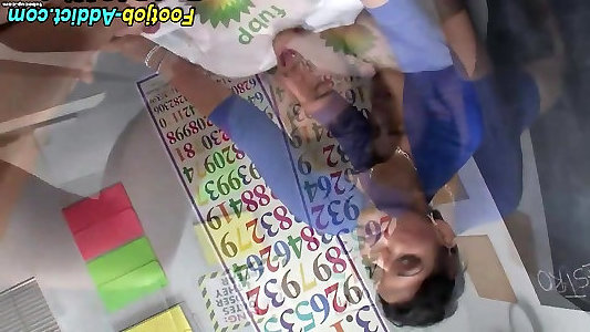 chérie aux cheveux longs fait vénérer ses biens par une vieille branlette