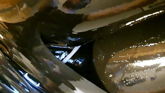 modèle fétichiste sexuel pin up taquinant lentement dans un costume sexuel huileux et brillant - vidéo dhalloween arya grander