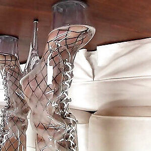 collants taquine, branlette des pieds, branlette des cuisses-sperme entre les jambes
