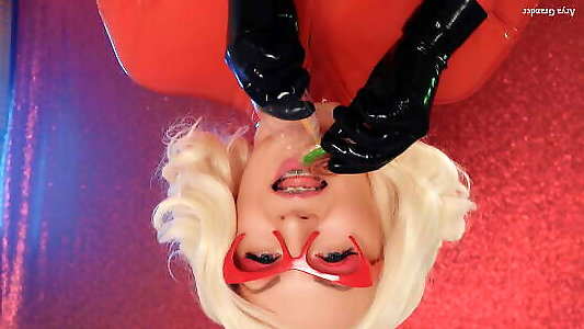 film de léchage de latex asmr mukbang-arya grander en bretelles