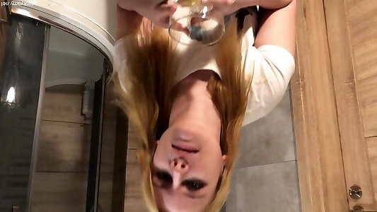 pisse dans sa trappe et sa salle de bain-une adolescente allemande aime la douche dorée