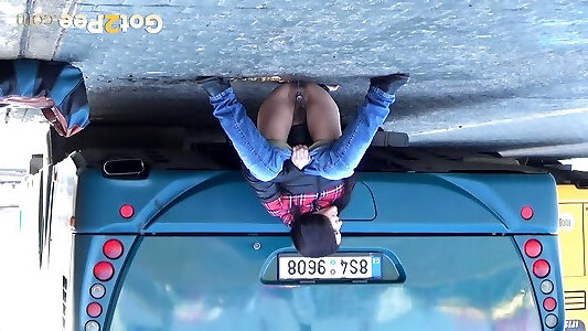 une brune à lesprit boueux descend un jean pour pisser au dépôt de bus