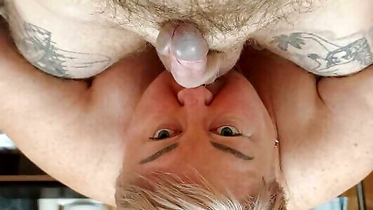 belle-mère lèche les couilles et je branle ma bite et jouis dans sa bouche et sur son visage