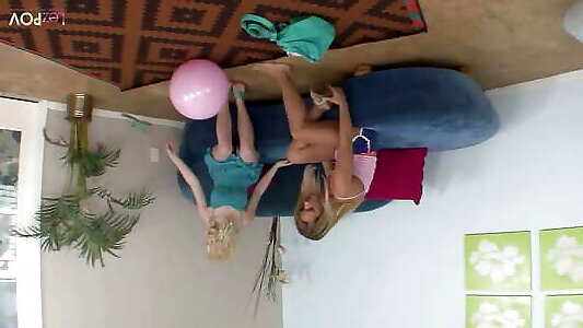 le volleyball de plage fatigue les lesbiennes blondes mais une fois de retour à la maison, elles soccupent delles-mêmes