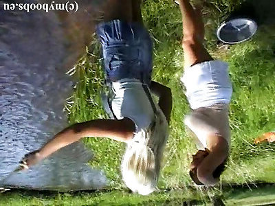 demi-soeur excitée en culotte de satin suce goulûment une bite et baise en levrette au bord du lac - couple amateur sexe en plein air
