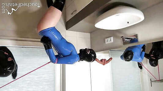 fejira com femme vêtue de latex ligotée avec les jambes écartées