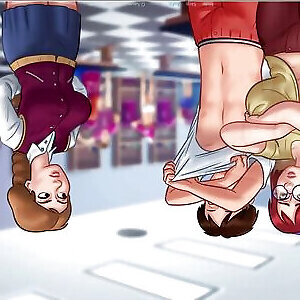 freshwomen - une adolescent fille aux gros seins avec un gros cul chevauche une grosse bite au bord de la piscine et avale du sperme-jeu porno animé en 3d - 4