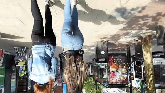 ça alors! salope au cul parfait en leggings serrés attrapée avec une bite dans la bouche!
