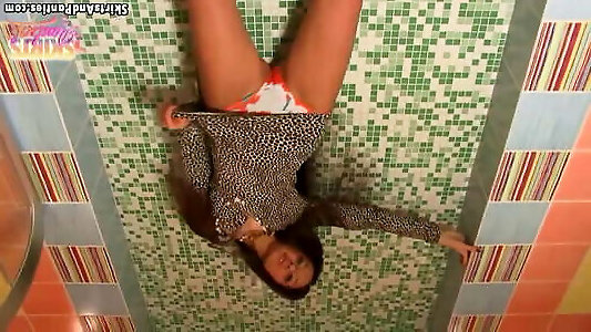 une ado mince montre des culottes sales et avec du smegma, puis fait pipi dans sa culotte avec un compte à rebours!