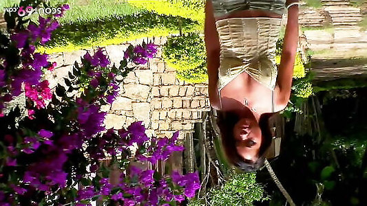 une petite chinoise mange un gode avant de se branler dans le jardin