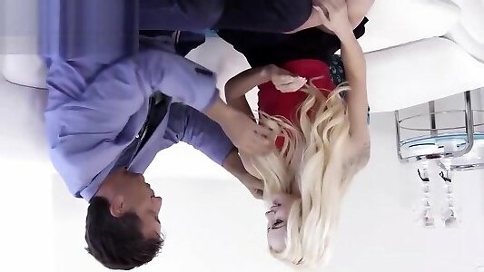 une blonde sexy se fait détruire les trous serrés par un mec chauve avec une énorme bite après une interview porno
