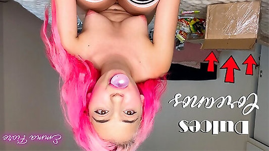 belle brune avec des cupcakes dodus ultra-mignons donne une pipe super chaude à son petit ami
