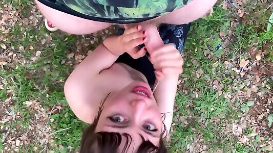 une adolescente rousse à la bouche se fait pénétrer par derrière dans un bois