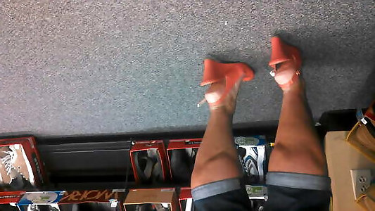 fléchir mes gros mollets musclés dans ces talons aiguilles roses