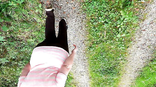 marcher pieds nus et se tapoter les seins nus