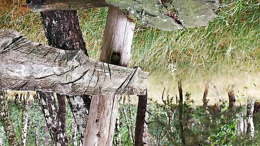 complètement nue dans les bois et giflant la chatte