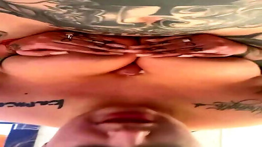 une ado tatouée avec des seins impressionnants se fait baiser et facialiser par beau