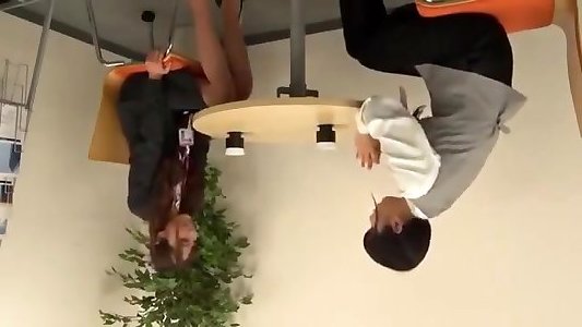 une asiatique en mini-jupe montre une livre avec une machine à faire lamour