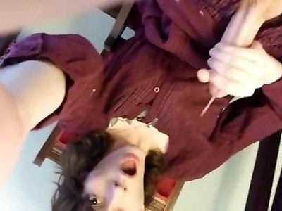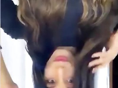 transsexuelle aux cheveux noirs pénétrée par un faux pénis par sa petite amie sur webcam