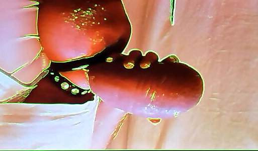 lubrifié le gode avec son propre sperme. orgasme anal mains libres avec machine à sexe