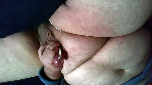 gros ours potelé poilu masturbe sa bite non coupée sur le canapé