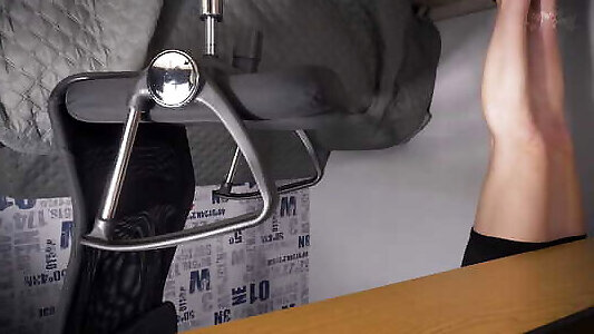 la présidente joue avec la bite avec ses pieds sous le joc jackie et fait face au piétinement et au facesitting