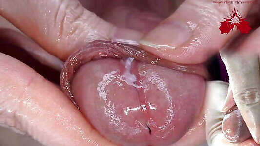 éjaculation interne à lintérieur de la fente étalée et urinant