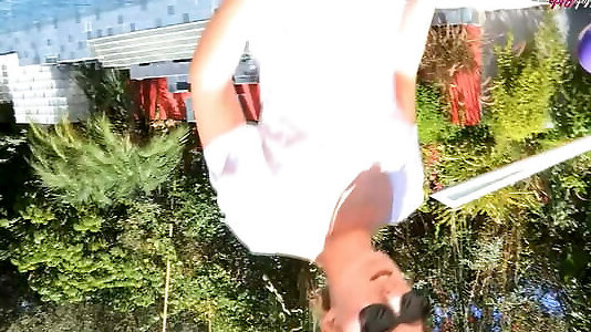 superbe blonde allemande séduisant une bite dure dans le jardin