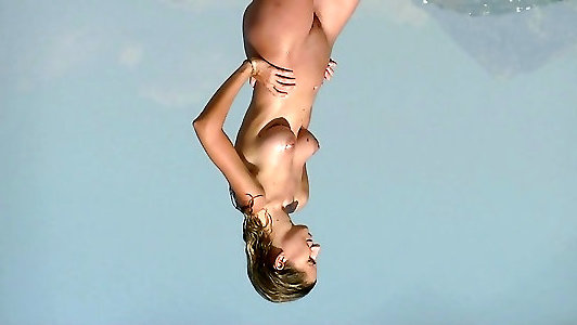 petite amie ouvre les jambes, lignes darrachage, cul à la piscine, slip de bikini