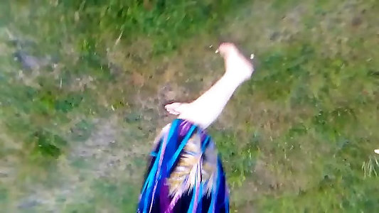 je suis découverte par un jardinier en me promenant à la campagne dans ma robe décolière!