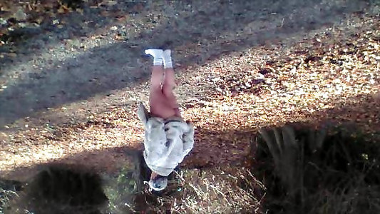 marcher en mini-jupe milf amusante dans les bois