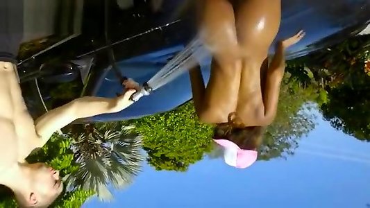 après avoir lavé la voiture en bikini, une milf plantureuse se fait labourer par son papa de sucre
