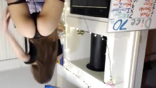maman en forme de première classe en stockigs samuse avec un faux pénis sur la webcam