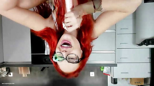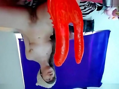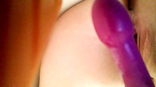 une dame ultra-mignonne se penche et se branle devant la caméra avec un jouet très énorme