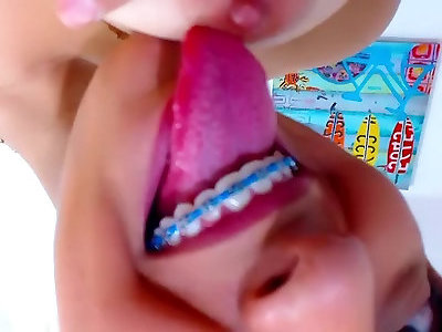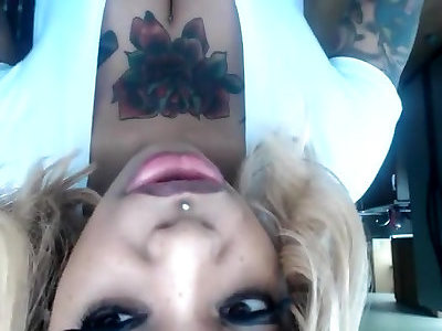 une strip-teaseuse aux cheveux noirs sur une webcam en train détrangler dinky de son beau