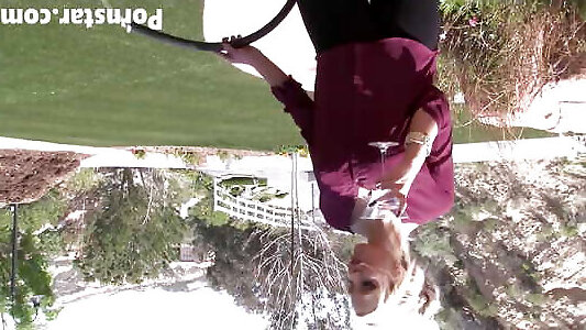 sur lescalier extérieur, la milf blonde chevauche une cowgirl inversée alors quil pince ses gros seins