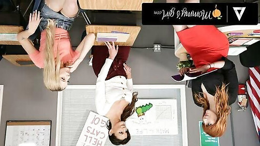 belle fille gicle sur la table du professeur pervertie