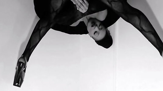 une fille en noir et blanc suce un mec aux yeux bandés avant de baiser leurs fentes