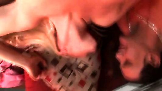 une grosse pute aux cheveux de corbeau suce le bâton de viande de son fille aux 4 yeux rasé