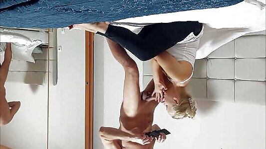 une massage punay excitée milf baise sa colocataire en silence pendant que son mari est à proximité et avale son sperme