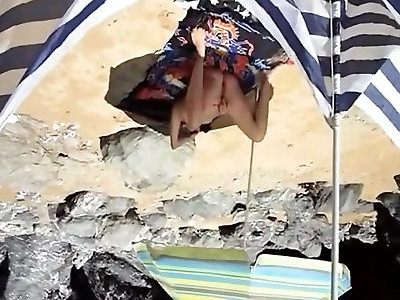 femme obtient léjaculation tout en garniture à la plage