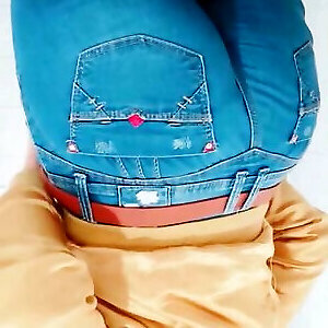 ma femme baisse son pantalon pour montrer son cul et sa chatte poilue