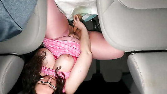 une milf épaisse choisit des collants et une jupe sur la banquette arrière de la voiture avec un jouet pour chaque trou