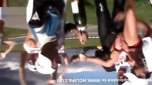 cinq nanas excitées se font pilonner durement dans une orgie gangbang sauvage et non-stop!