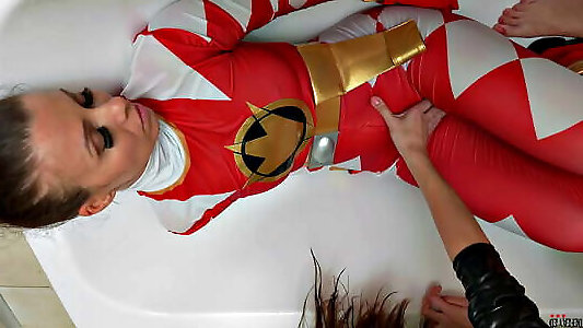 lutte de super-héros entre filles - le ranger rouge maîtrisé