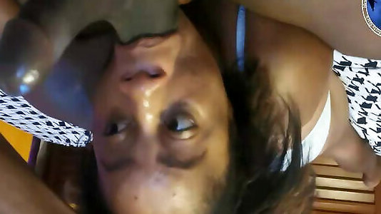 une femme noire aux gros seins avec une bite laiteuse en elle