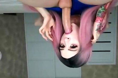 une adolescent blonde qui donne du plaisir oral et des noix à gorge profonde