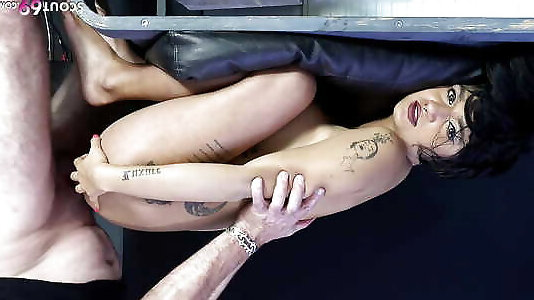 adolescent fille gothique forcée de sucer la bite d&039;un homme musclé