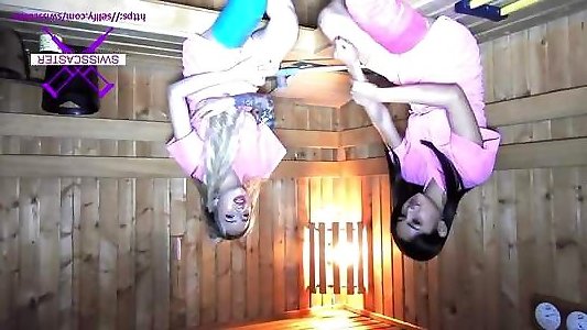 fetisch-concept.com - deux demoiselles avec une longue jambe coulée dans le sauna